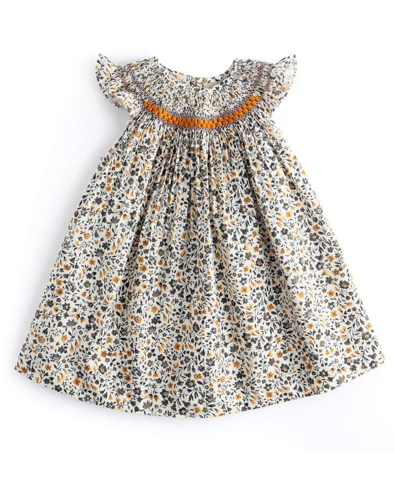 Jesusito smock sin mangas de estampado floral con detalle bordado naranja.