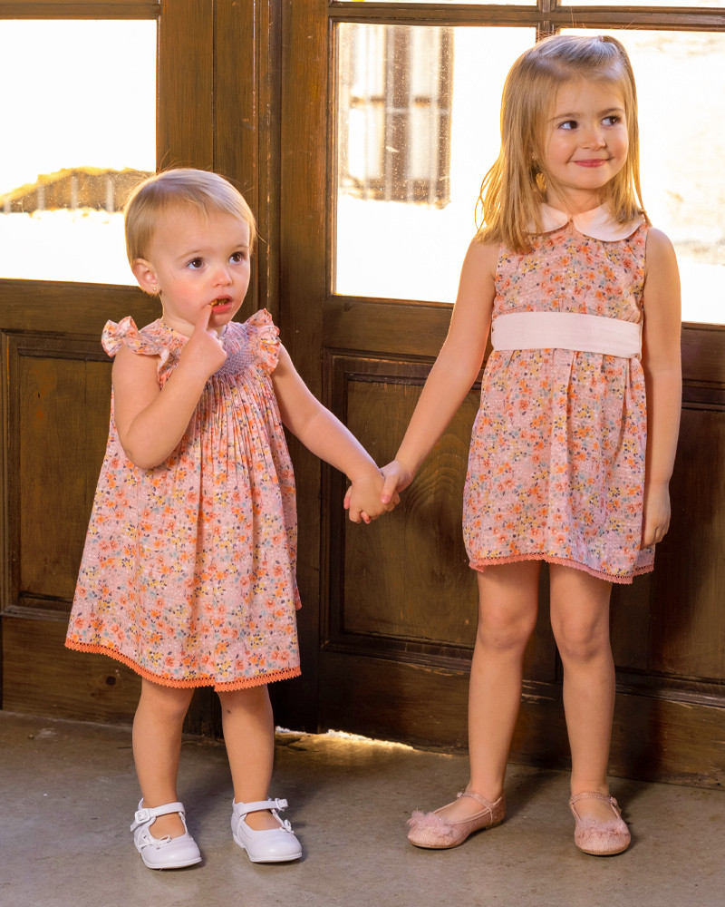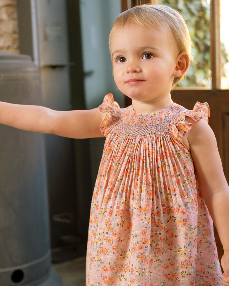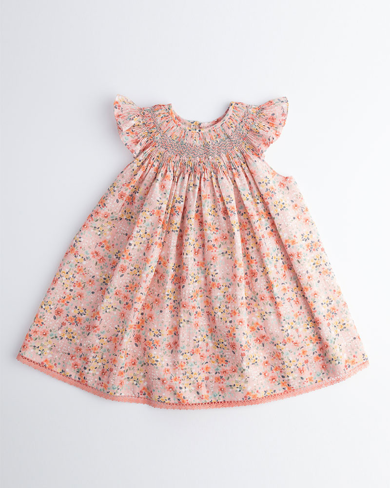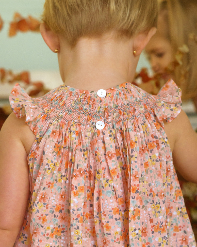 Clásico vestidito con punto smock de calidad hecho a mano. Hecho a mano y en colores muy dulces