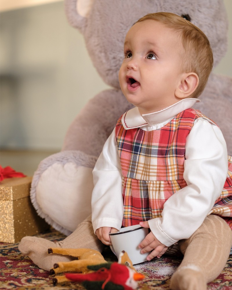 Nuestra ranita Tartán también en rojo, ideal para tu bebé en las fiestas navideñas.