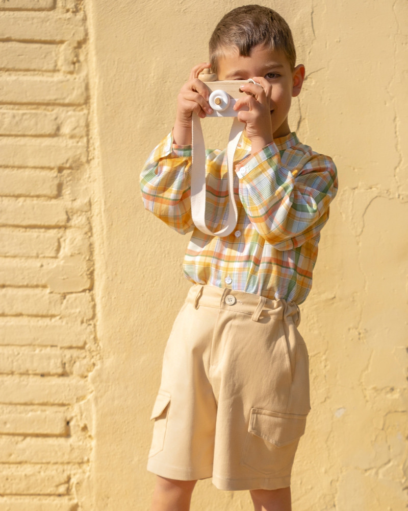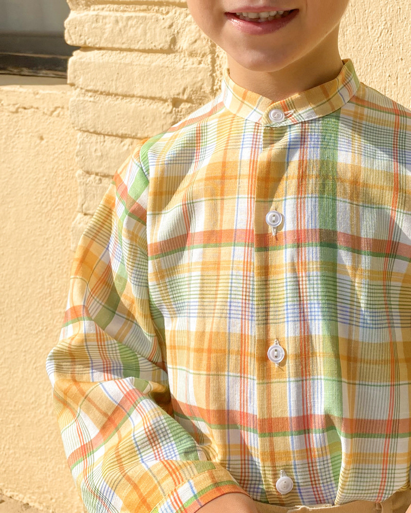 Camisa de cuello mao de un tejido super ligero y suave, con un estampado a cuadros que invita a combinarse