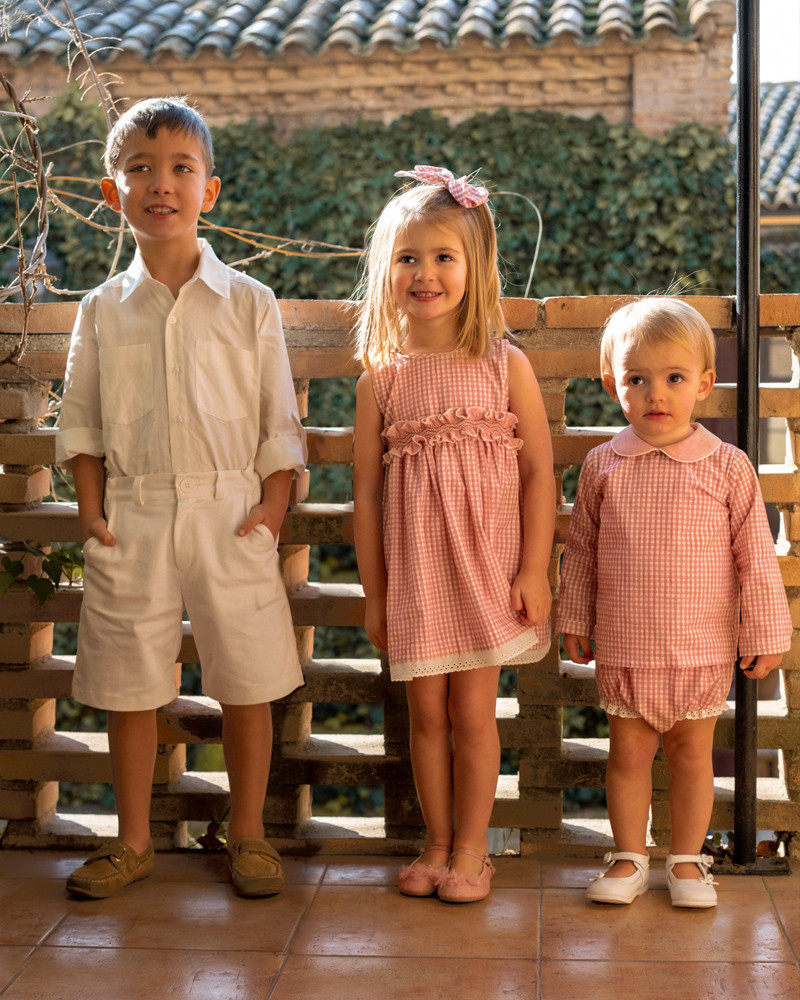 Camisa de algodón y cuello redondo. En un estampado de vichy muy dulce y un poco más clásico. Prenda básica que luce muy bien en los más pequeñitos